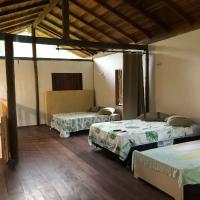 Casa tem duas camas de casal, uma de solteiro e um colchão de casal.